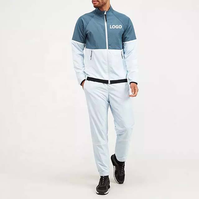 กางเกงวอร์มผู้ชาย,กางเกงวิ่งออกกำลังกายผ้าฝ้ายโพลีเอสเตอร์มีซิปเข้ารูปทอลายบล็อกสี