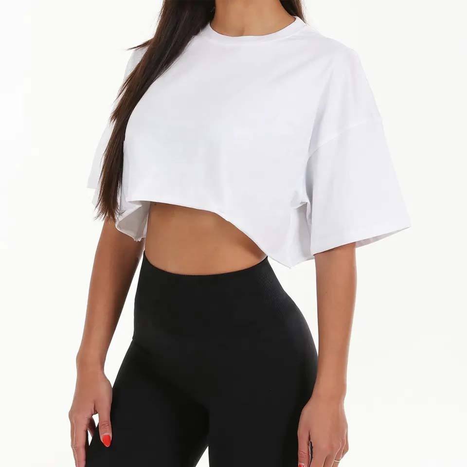 เสื้อครอปใส่ออกกำลังกายผ้าคอตตอนลำลองเสื้อครอปสำหรับเล่นโยคะเสื้อออกกำลังกายโลโก้ออกแบบได้ตามต้องการ