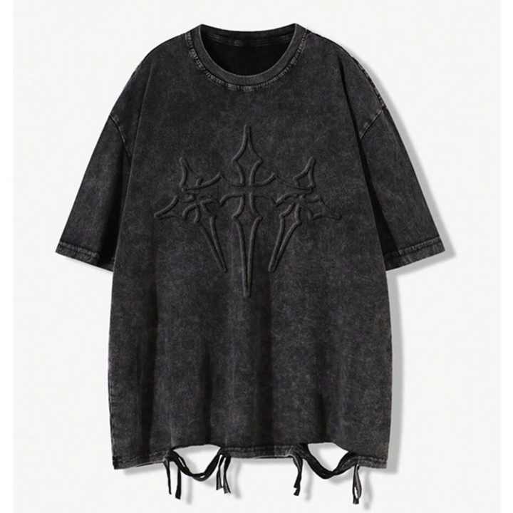 เสื้อยืดคอกลมโอเวอร์ไซส์พิมพ์ลายนูนโฟม 3 มิติ สไตล์วินเทจ ลุคทำเก่า ขาดๆ แบบมีรู แขนสั้น สำหรับผู้ชาย รับผลิตตามสั่งพร้อมสกรีนโลโก้ขายส่ง