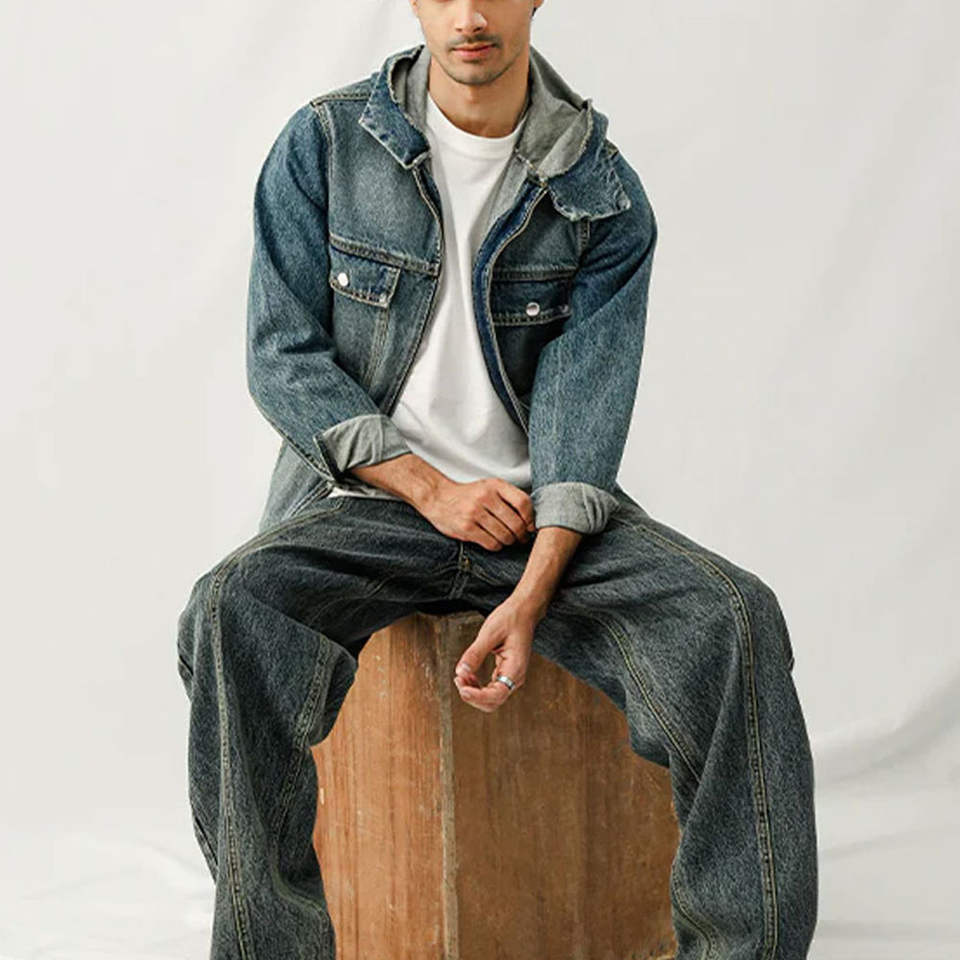 แจ็คเก็ตยีนส์ผ้าฝ้ายสไตล์สตรีทแวร์แบบปรับได้ สินค้าใหม่มาแรง แจ็คเก็ตยีนส์เท่ๆ สำหรับผู้ชาย รับผลิตตามสั่งพร้อมสกรีนโลโก้