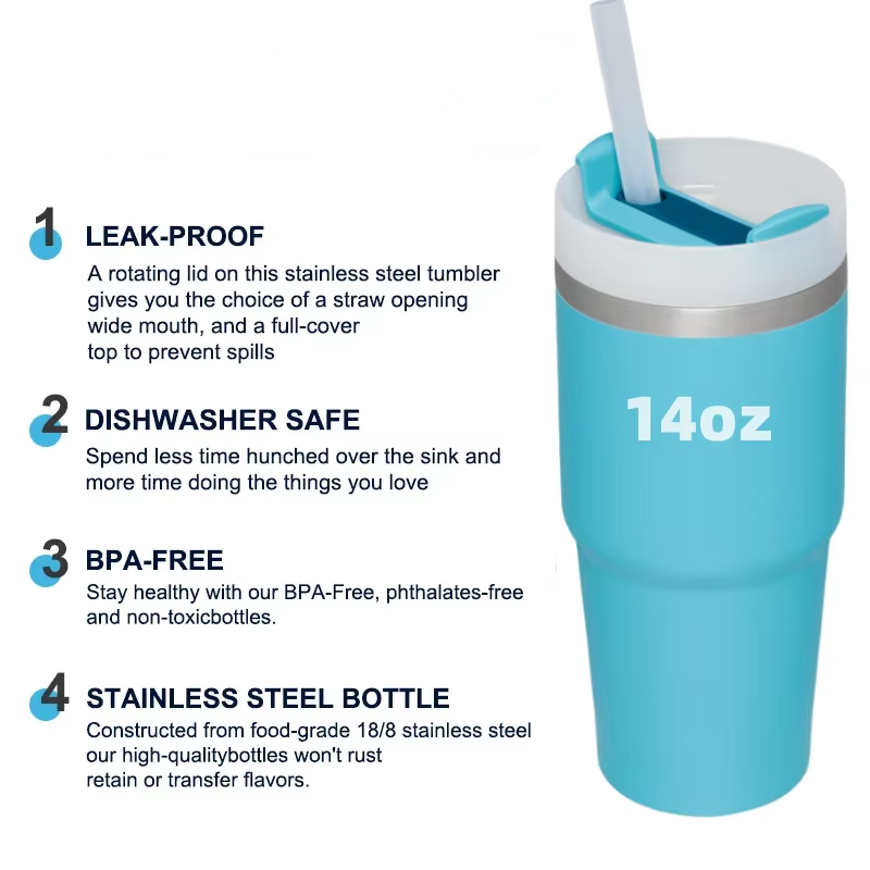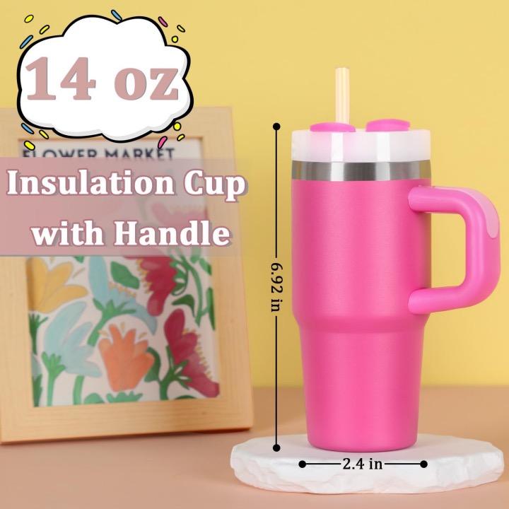 แก้วน้ำสแตนเลสสองชั้นขนาด 14 ออนซ์ สำหรับเด็ก พร้อมฝาและหูจับ สำหรับกาแฟหรือน้ำ รับผลิตตามสั่งพร้อมโลโก้