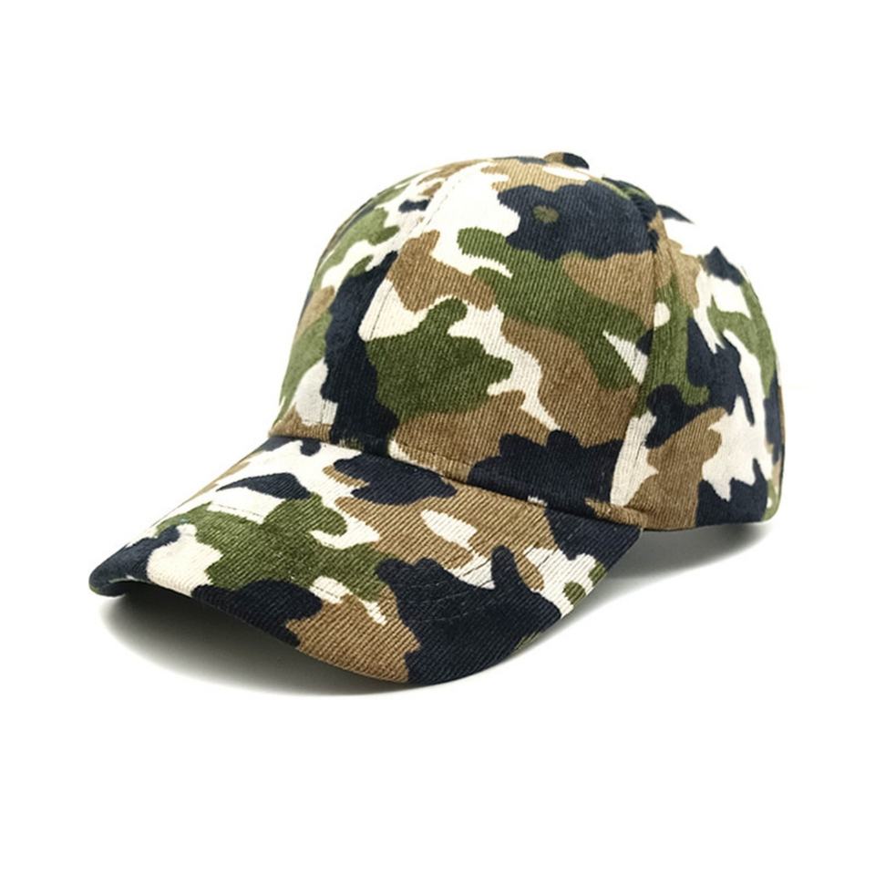 หมวกเบสบอลผ้าคอร์ดูรอยลายพรางปักโลโก้ตามสั่งขายส่งแบบ OEM ทรง 6 แผง ปีกโค้งสำเร็จรูป
