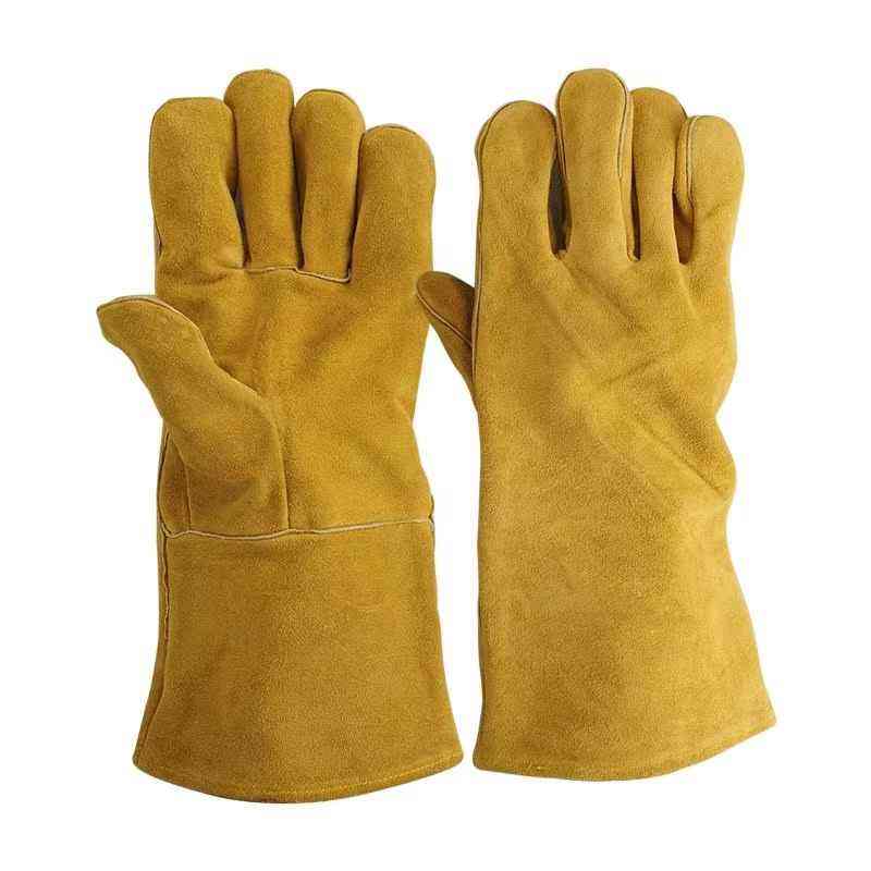 ถุงมือทำงานเชื่อมหนังระบายอากาศได้ดีถุงมือทำงานเชื่อมด้วยความร้อนสูงโลโก้ออกแบบได้ตามต้องการ