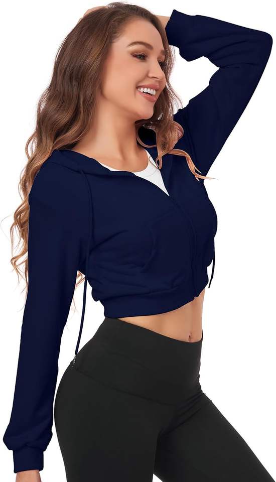 เสื้อฮู้ดครอปผู้หญิงสั่งทำโลโก้ขายส่ง เสื้อครอปท็อปผ้าฝ้ายสำหรับผู้หญิง ขายดี ไซส์พลัส ออกแบบตามสั่ง OEM