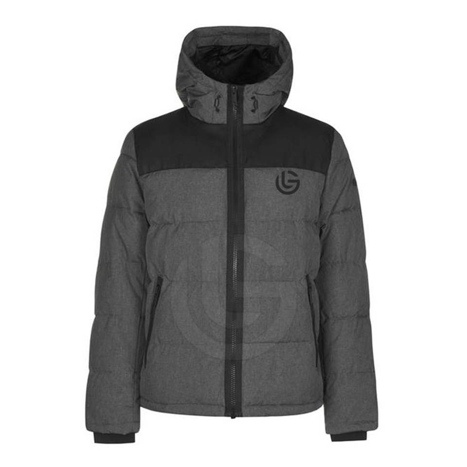 แจ็คเก็ตพัฟเฟอร์ผู้ชายแบบมีฮู้ด สกรีนโลโก้ตามสั่ง ขายส่ง ผลิตจากโพลีเอสเตอร์ 100% กันน้ำ คุณภาพสูง สำหรับฤดูหนาว
