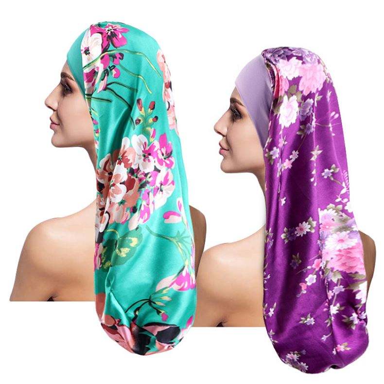 หมวกกันแดดผ้าซาติน2ชิ้นสำหรับผู้หญิงหมวกถักผมยาวขนาดใหญ่พิมพ์ลายอุปกรณ์เสริมสำหรับใส่ผมนอนกลางคืน