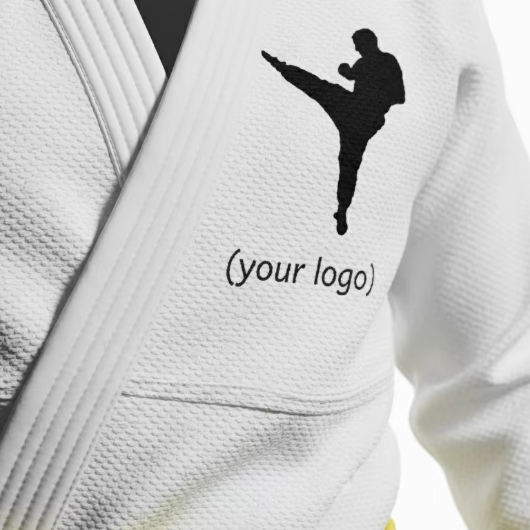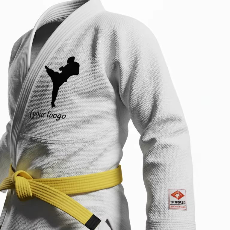 เสื้อผ้าเด็กทารกและเด็กเล็กสำหรับศิลปะการต่อสู้เทควันโดคาราเต้ยูโดบราซิลเลียนยิวยิตสู ผลิตจากผ้าฝ้าย 100% พิมพ์ลายโลโก้ตามสั่งแบบขายส่งด้วยเทคนิคการถ่ายโอนความร้อน