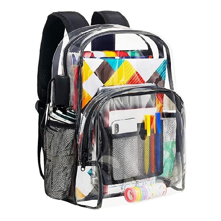 กระเป๋าเป้สะพายหลังพีวีซีใสแบบหลายช่องกระเป๋าใส่หนังสือไปโรงเรียนแบบโปร่งใสพิมพ์โลโก้ได้ตามต้องการ