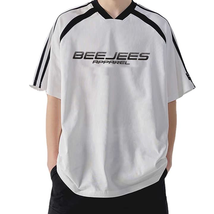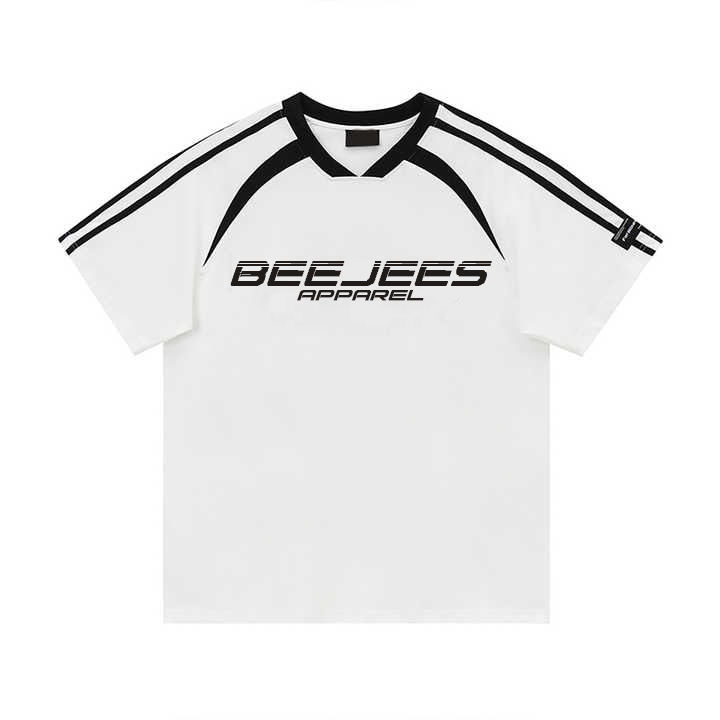 เสื้อยืดผ้าฝ้ายแขนสั้นลายทางผ้าแคนวาสสำหรับแข่งขันโลโก้ออกแบบได้ตามต้องการ