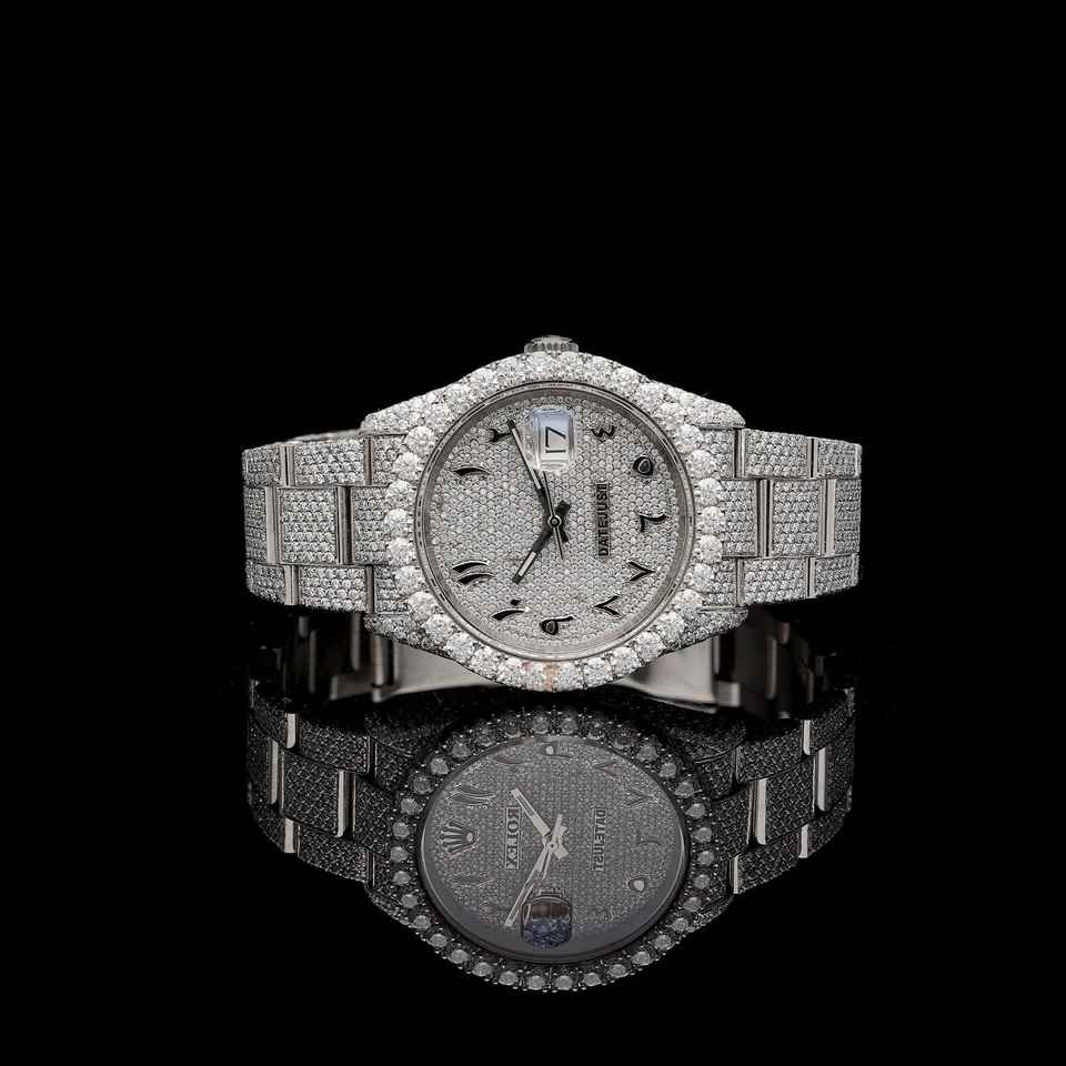 นาฬิกาหรูกันน้ำสำหรับผู้ชายหน้าปัดกระจกอะนาล็อกติดเพชรน้ำแข็งสแตนเลสเคลื่อนไหวอัตโนมัติออกแบบโลโก้ได้ตามต้องการ