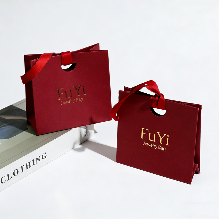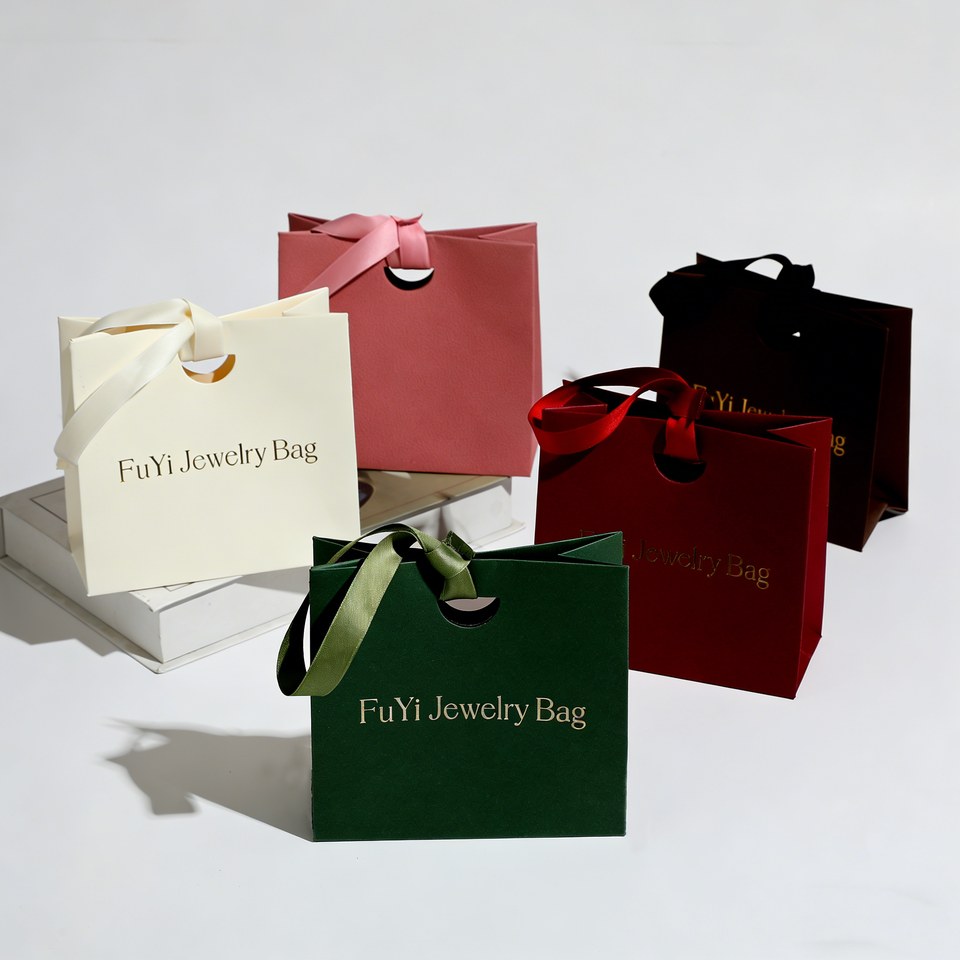 ถุงกระดาษใส่เครื่องประดับสั่งทำพร้อมโลโก้ขายส่ง พร้อมริบบิ้น ถุงช้อปปิ้งใส่เครื่องประดับ สร้อยคอ แหวน กระเป๋าถือ ถุงกระดาษบรรจุภัณฑ์เครื่องประดับ