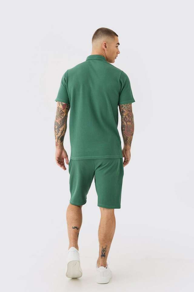 เซ็ตเสื้อโปโลและกางเกงขาสั้นวาฟเฟิลสีดำทรงสลิมฟิตโลโก้ออกแบบได้ตามต้องการดีไซน์ล่าสุดสำหรับยิมและออกกำลังกาย