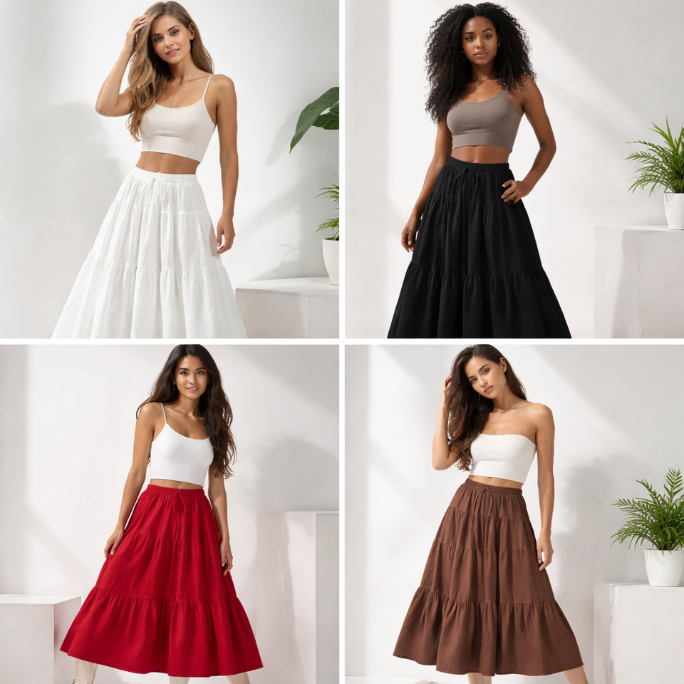 กระโปรงยาวผ้าฝ้ายพิมพ์ลายแฟชั่นสำหรับผู้หญิง ขายส่งพร้อมปักโลโก้ตามสั่ง เสื้อผ้าลำลองขายดี กระโปรงยาวระบายสำหรับฤดูใบไม้ร่วง