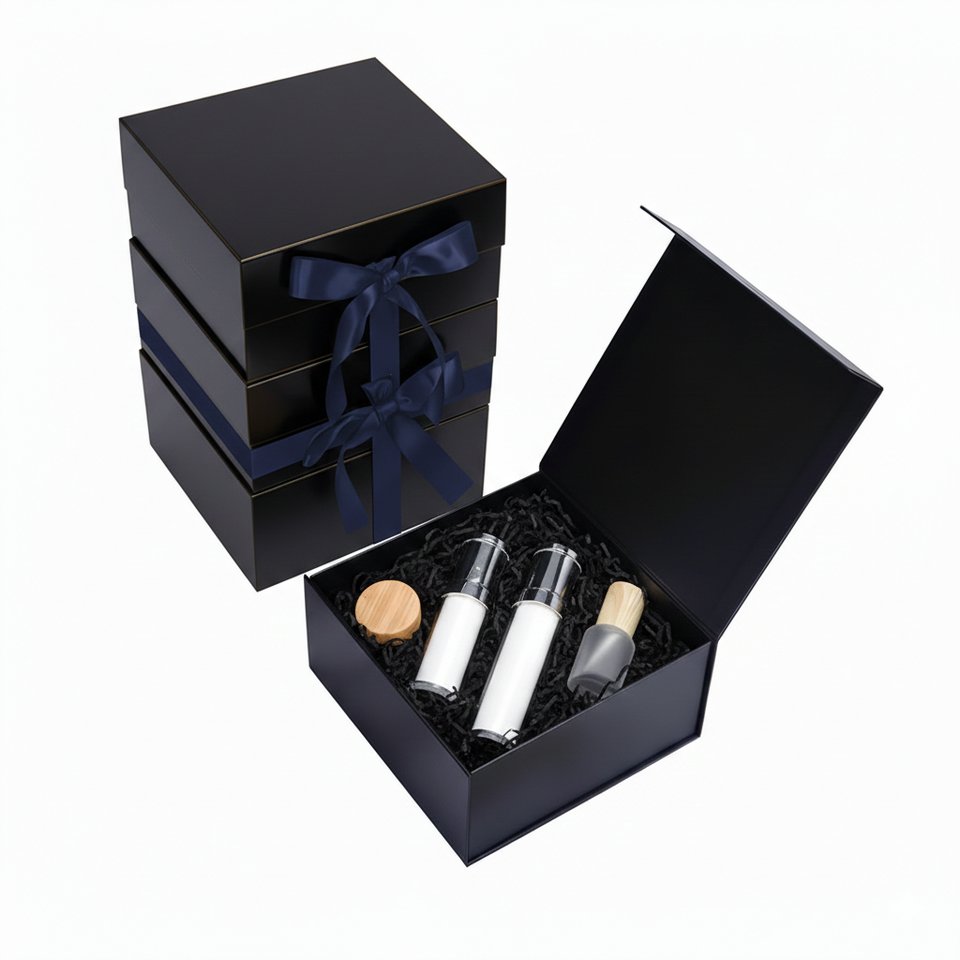 กล่องของขวัญแม่เหล็กแข็งแบบกำหนดเองพร้อมโลโก้ขายส่ง พร้อมถุงกระดาษ กล่องบรรจุภัณฑ์พับได้แบบพรีเมียม รีไซเคิลได้ กล่องแม่เหล็กสุดหรู