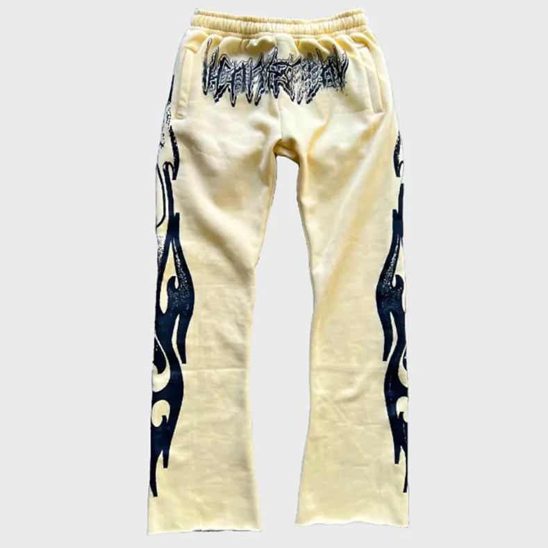 กางเกงวอร์มผ้าคอตตอนสำหรับผู้ชายกางเกงปลายบานแบบลำลองเอวยางยืดปักโลโก้ได้ตามต้องการ