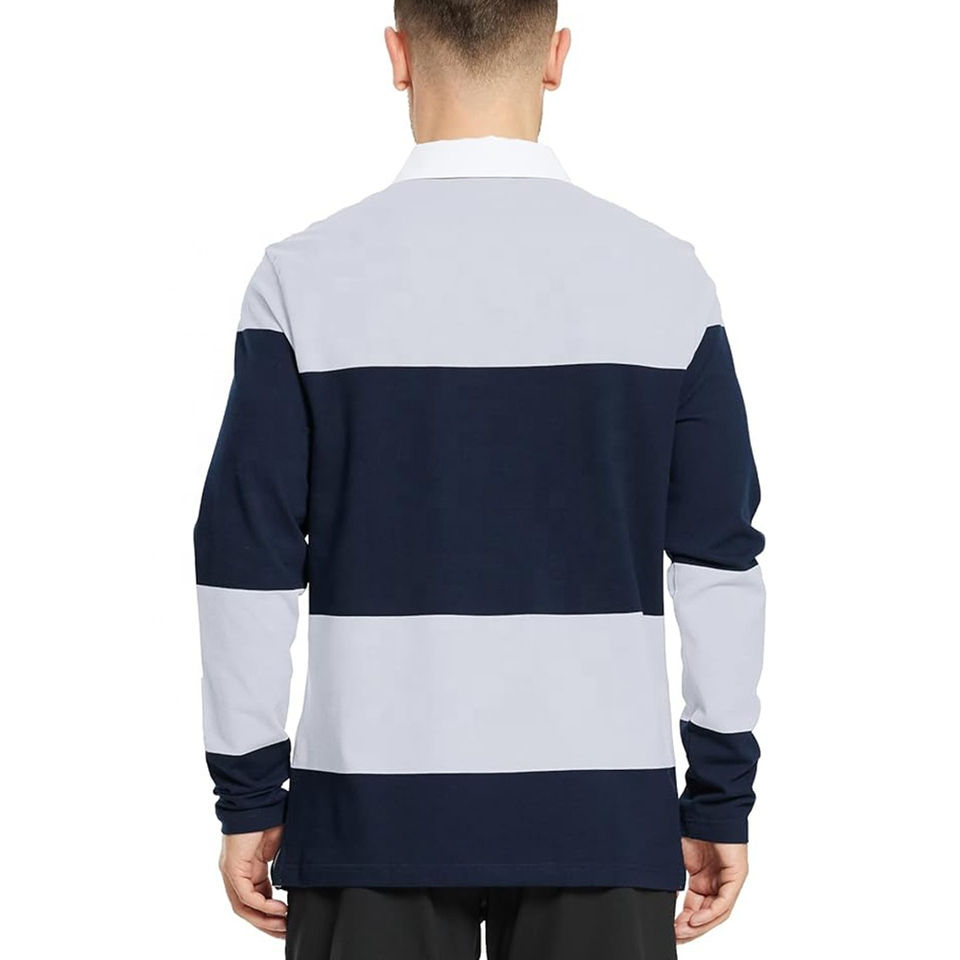 เสื้อรักบี้แขนยาวผู้ชายสั่งทำพร้อมโลโก้ขายส่ง ผ้าโพลีเอสเตอร์ 100% ระบายอากาศได้ดี พิมพ์ลายทาง บริการ OEM