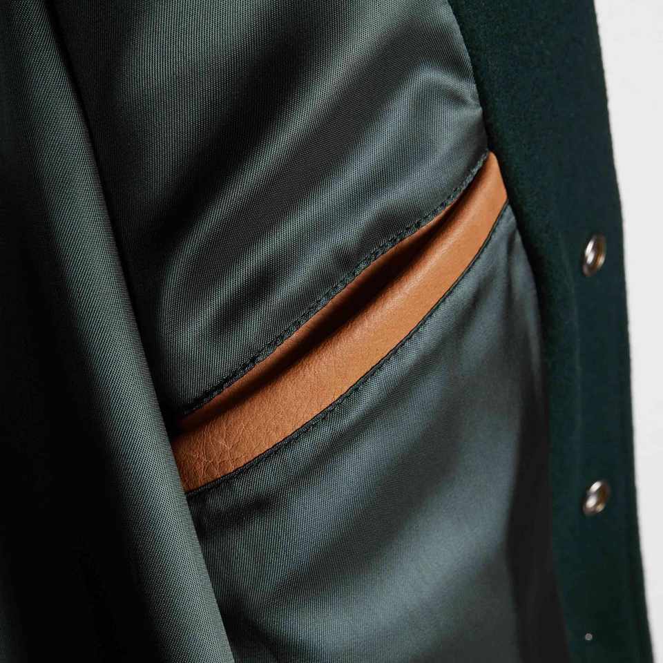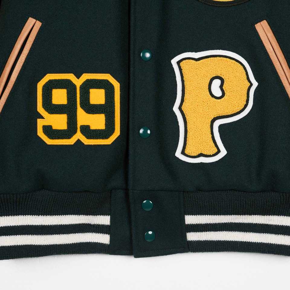 แจ็กเก็ตเบสบอลหนัง PU สำหรับผู้ชายเสื้อทีมเบสบอลปักลายอักษรอักษรเนียลยาวยาวโลโก้ออกแบบได้ตามต้องการ