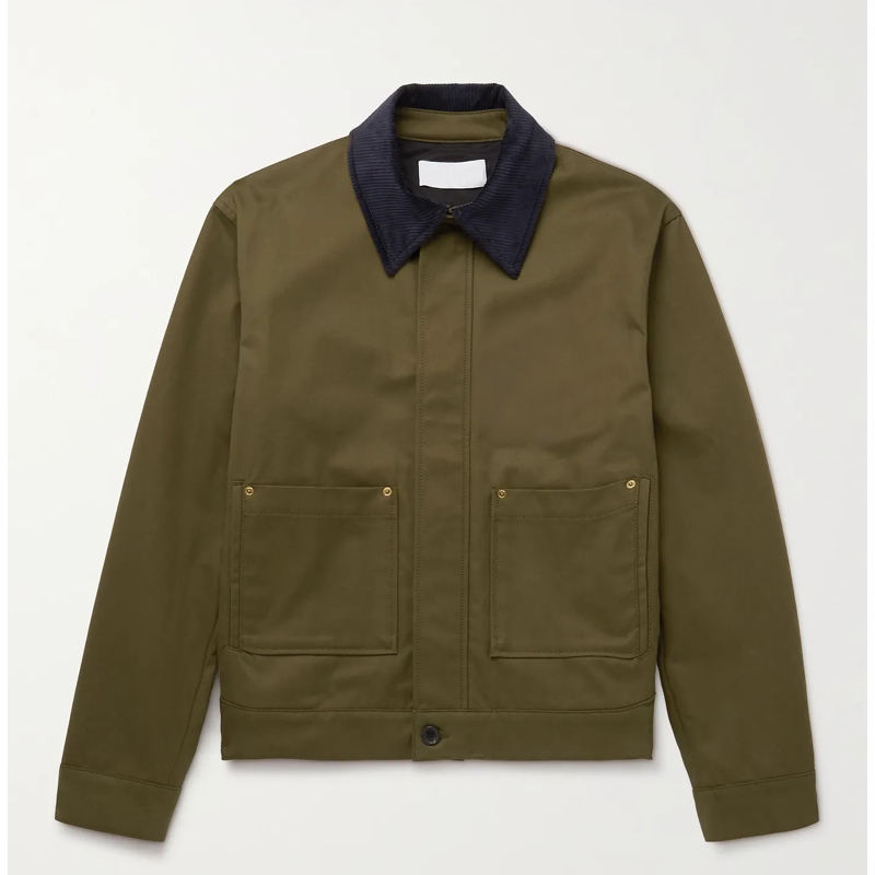 เสื้อบอมเบอร์แจ็คเก็ตผ้าฝ้ายทอลายทแยง,กระดุมและกระเป๋าแต่งโลโก้ได้ตามต้องการสำหรับผู้ชาย