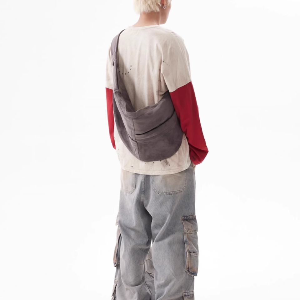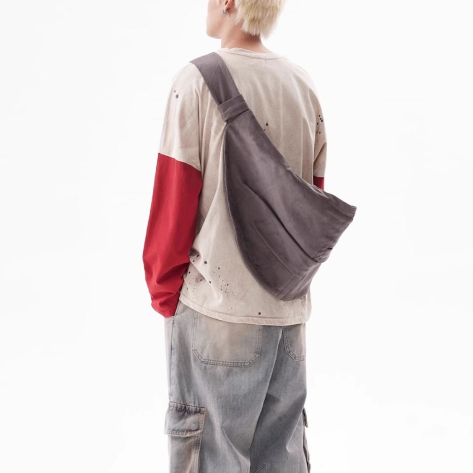 เสื้อยืดผู้ชายสไตล์สตรีทลายปะติดปะต่อแบบดิบๆ แขนยาว ผ้าฝ้ายคุณภาพสูง บริการรับผลิตตามสั่งพร้อมโลโก้แบบ OEM ขายส่ง