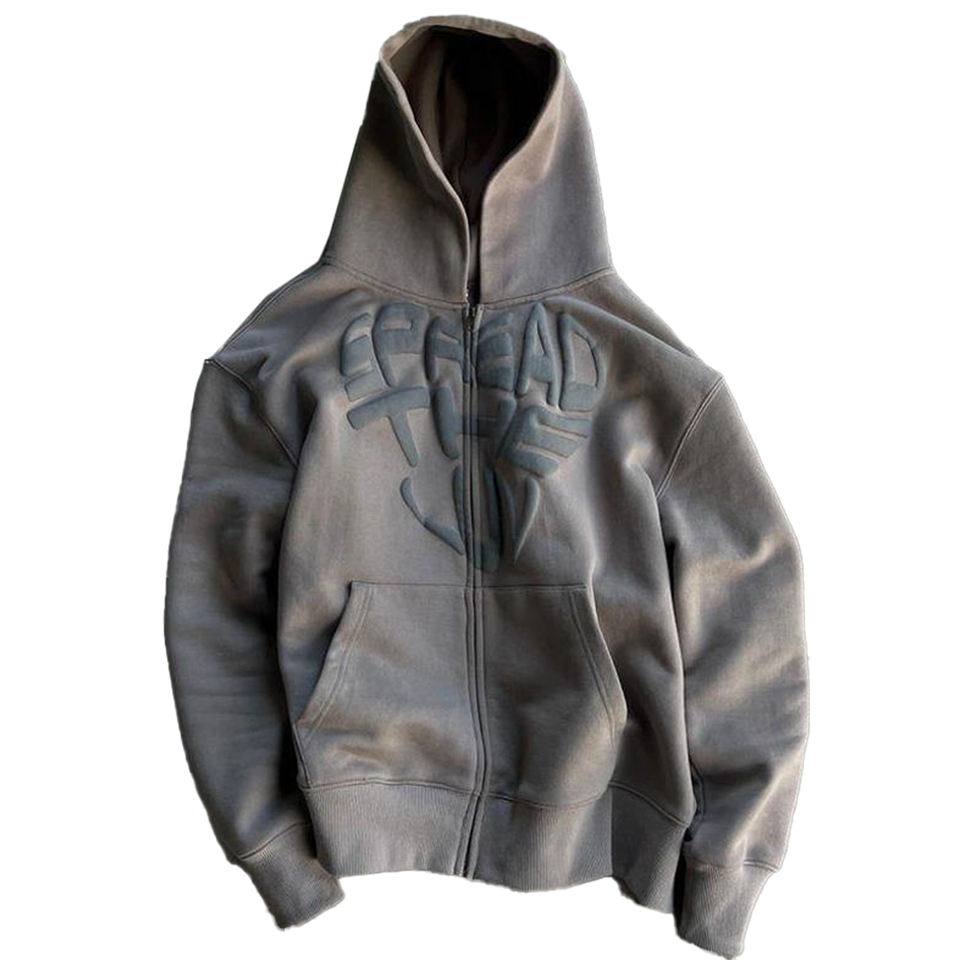 เสื้อฮู้ดผู้ชายผ้าคอตตอนออร์แกนิคปักลายมีซิปแบบวินเทจผ้ากรดซักแบบโบราณออกแบบโลโก้ได้ตามต้องการ