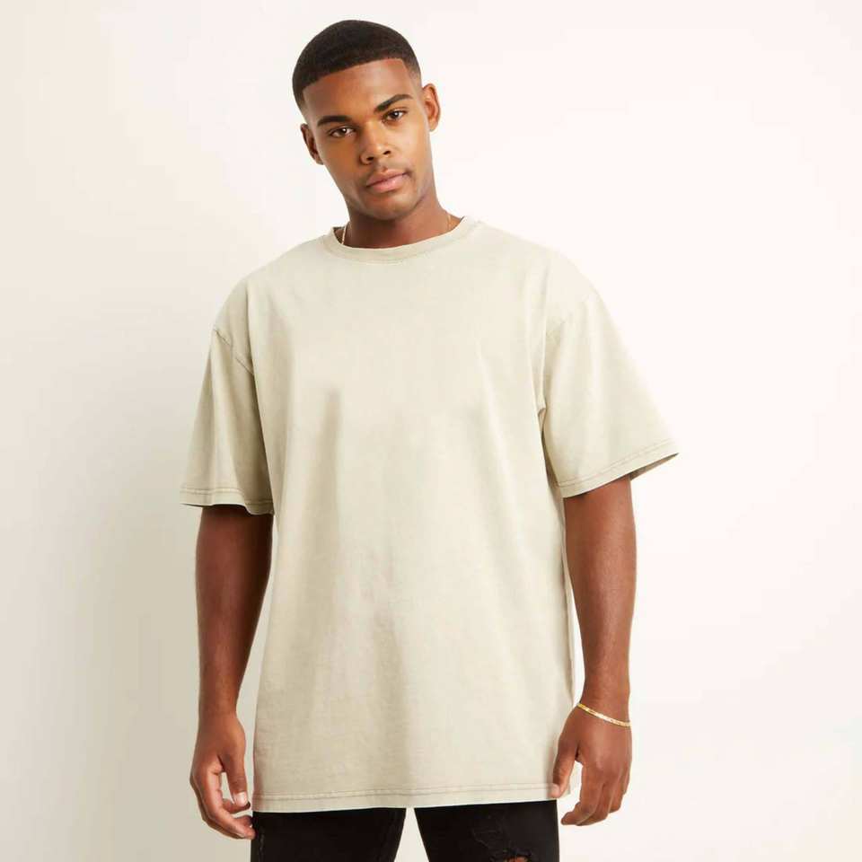 Wholesale Custom Logo Oversized Cotton T-Shirt for Men Drop Shoulder Acid Wash Blank Organic Knitted Fabric