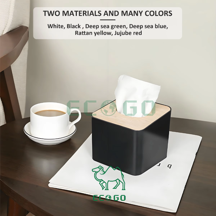 ที่ใส่กระดาษเช็ดปากพลาสติกพร้อมกล่องเยื่อไม้ไผ่ธรรมชาติที่ใส่กระดาษทิชชู่สำหรับร้านอาหาร