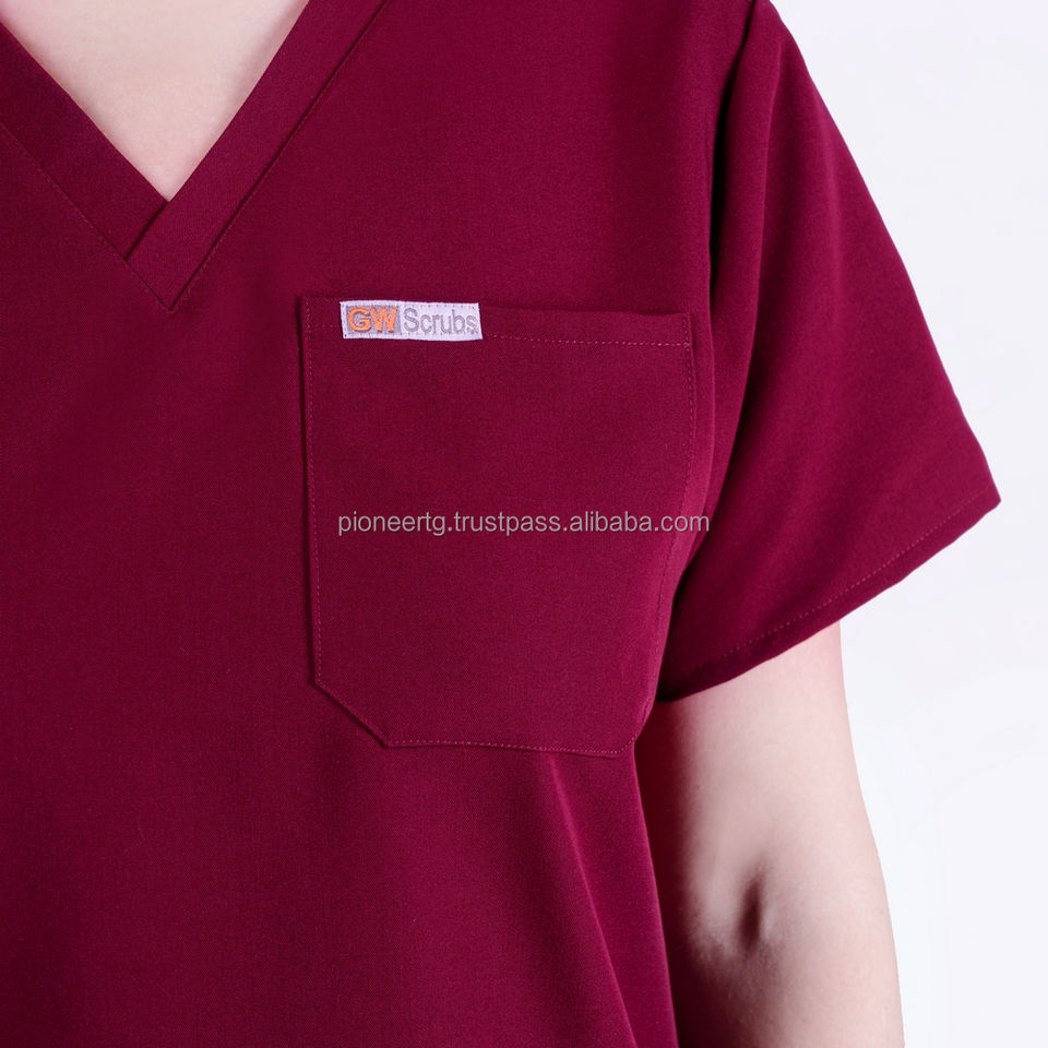ชุดยูนิฟอร์มพยาบาลผ้าทวิลโพลีเอสเตอร์/คอตตอนสำหรับผู้หญิง รับผลิตตามสั่งพร้อมปักโลโก้ ผลิตในเวียดนามสำหรับโรงพยาบาล