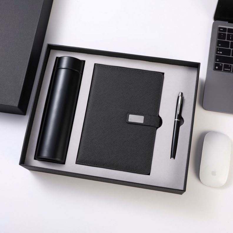 ชุดเครื่องเขียนขวดน้ำหุ้มฉนวนปากกาสมุดโน้ตหนังสำหรับลูกค้าธุรกิจระดับพรีเมี่ยมออกแบบโลโก้ได้ตามต้องการ