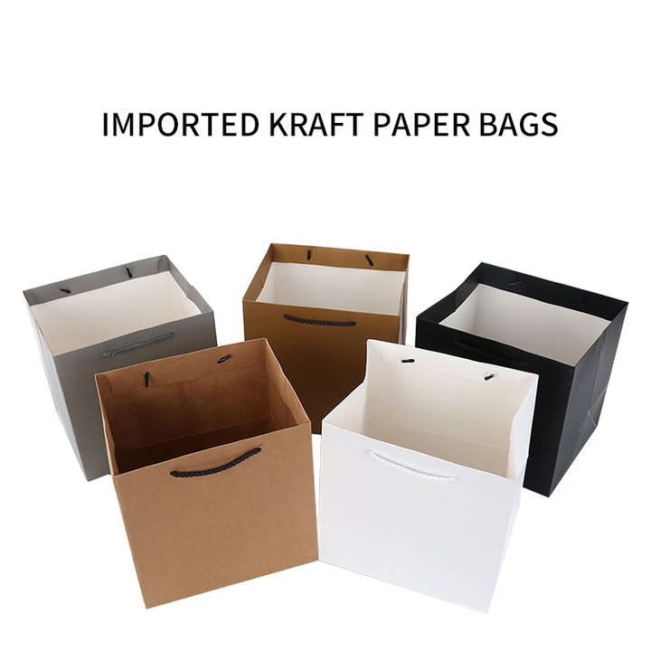 ถุงกระดาษคราฟท์พิมพ์ลายโลโก้ตามสั่งพร้อมหูจับบรรจุภัณฑ์ช่อดอกไม้