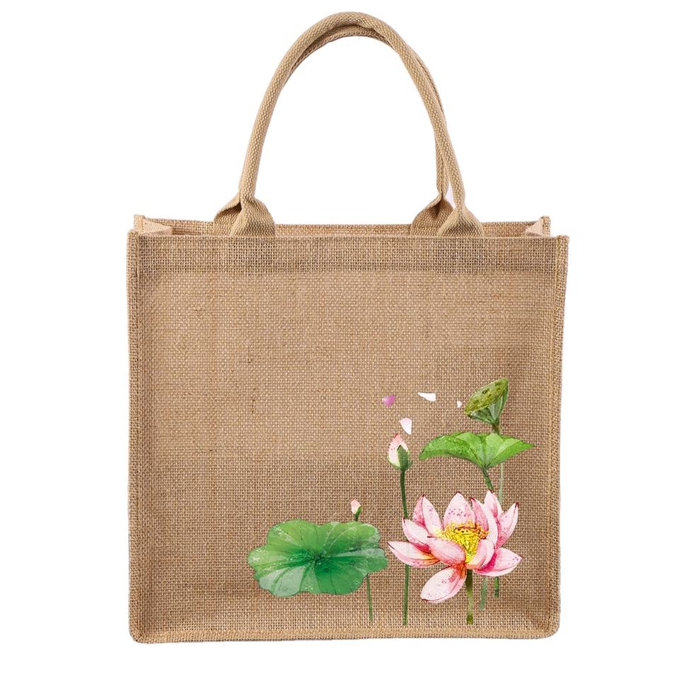 ขายส่งโลโก้ที่กําหนดเองพิมพ์กระเป๋าผ้ากระโปรงกระเป๋าผ้าลินินรีไซเคิลถุงผ้าปอกระเจาช้อปปิ้งเป็นมิตรกับสิ่งแวดล้อม