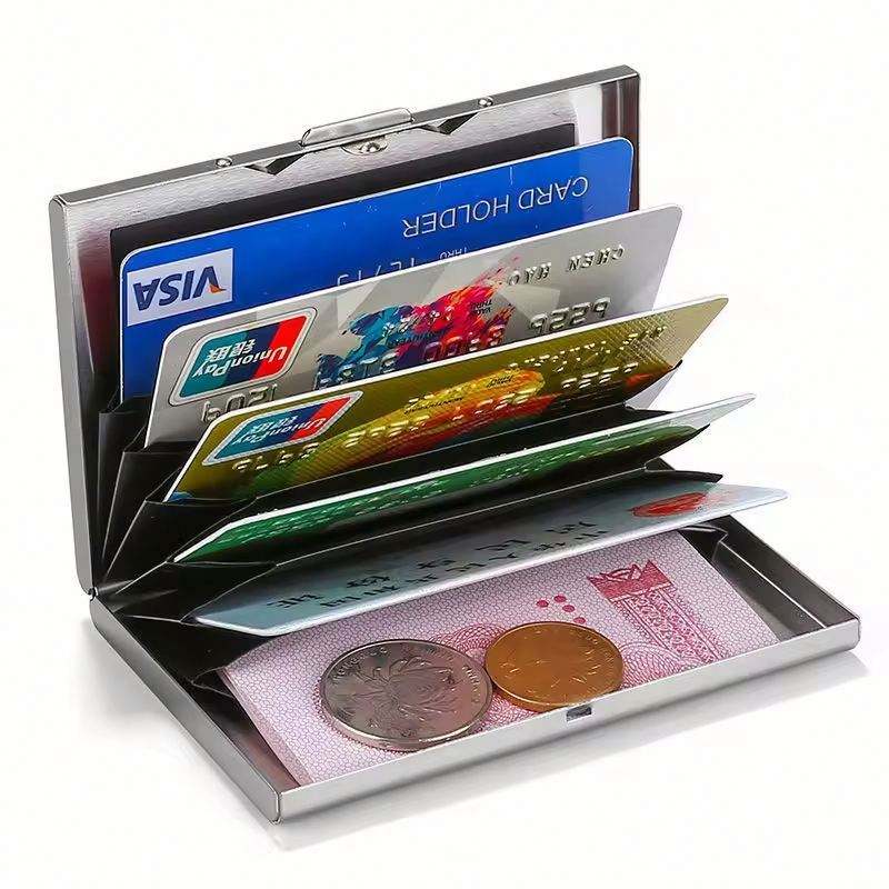กระเป๋าสตางค์ RFID ป้องกันการโจรกรรมข้อมูลแบบขายส่ง สั่งทำโลโก้ได้ กระเป๋าสตางค์ขนาดเล็กบางสำหรับผู้ชาย ของขวัญส่งเสริมการขายสำหรับธุรกิจ กล่องใส่บัตรประจำตัวและนามบัตร