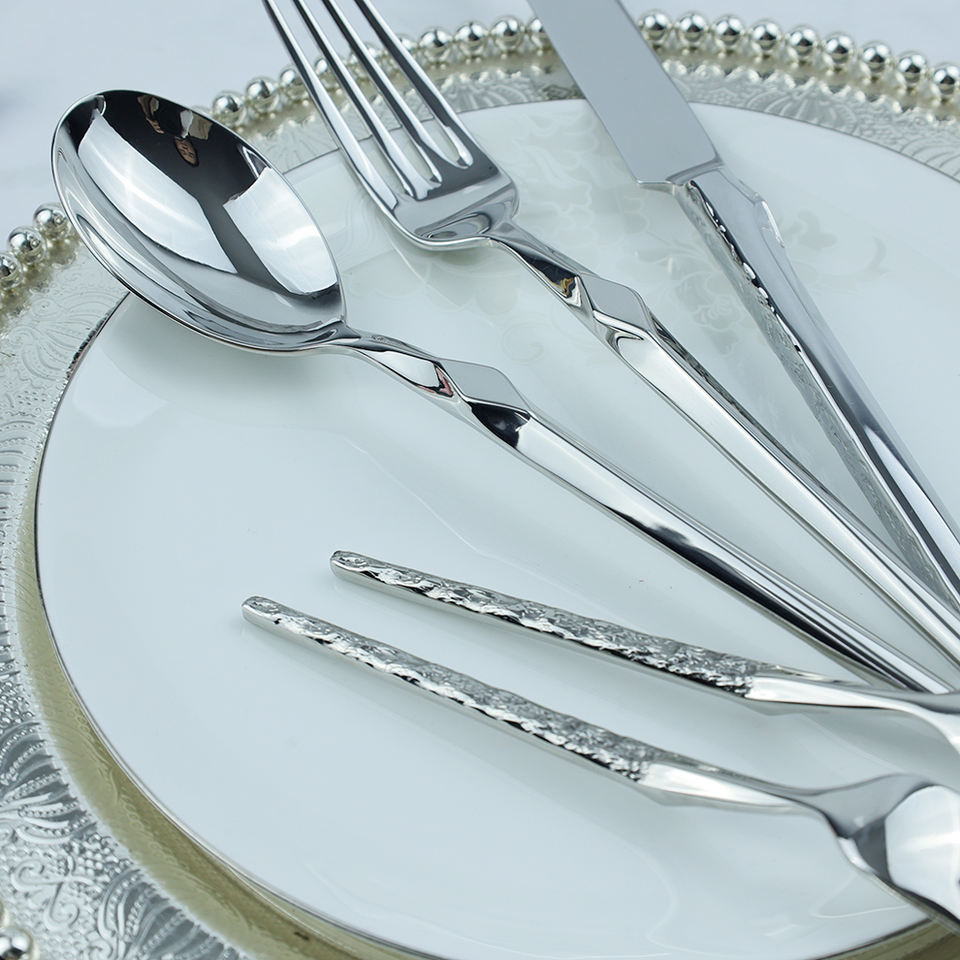 ชุดมีดสเตนเลสสตีลสีเงินชุดของขวัญสำหรับงานแต่งงานเครื่องใช้บนโต๊ะอาหารสุดหรูสินค้าใหม่โลโก้ออกแบบได้ตามต้องการ