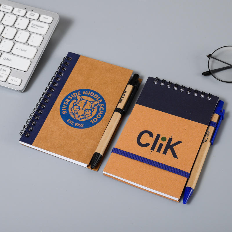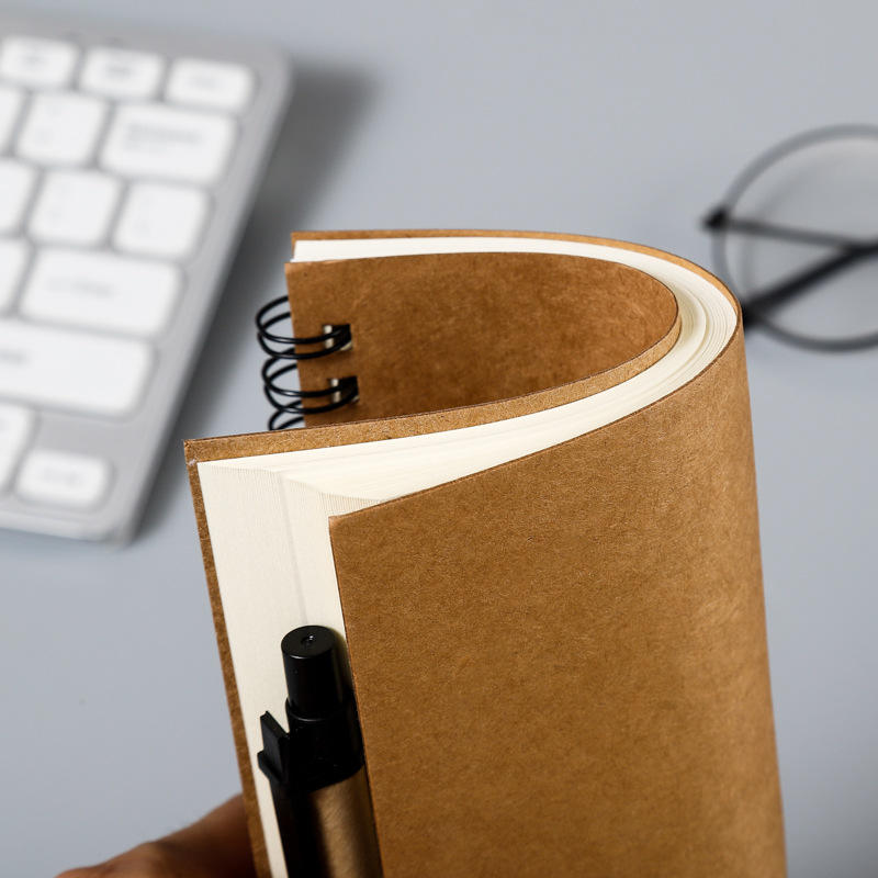 สมุดบันทึกกระดาษคราฟท์แบบเรียบง่ายพร้อมปากกากระดาษรีไซเคิลเป็นมิตรต่อสิ่งแวดล้อมสำหรับโรงเรียนโลโก้ที่กำหนดเอง