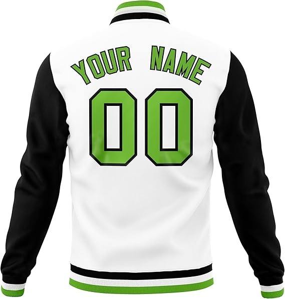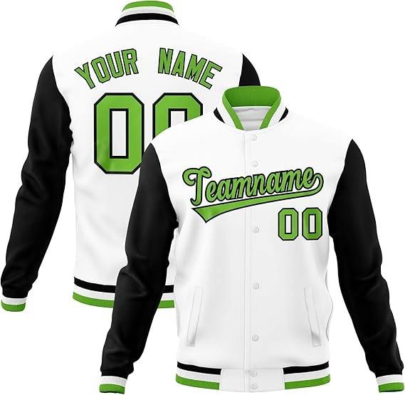 แจ็กเก็ตเบสบอลของผู้ชายแขนเสื้อปักลายผ้าขาวดำเสื้อครอปทีมตัวแทน
