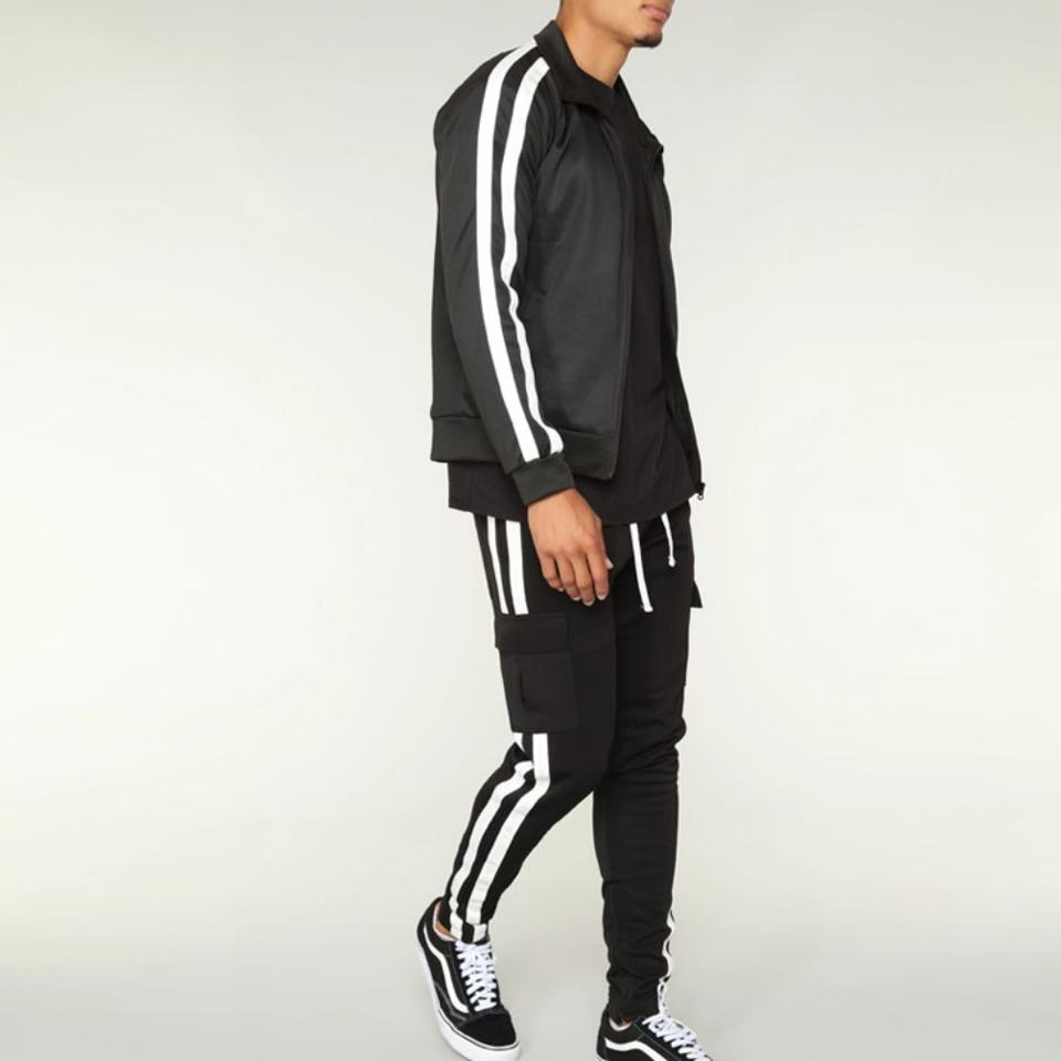 ชุดวอร์มกีฬาผู้ชายแบบสลิมฟิตพร้อมแถบข้าง รับผลิตตามสั่งพร้อมโลโก้ ขายส่ง