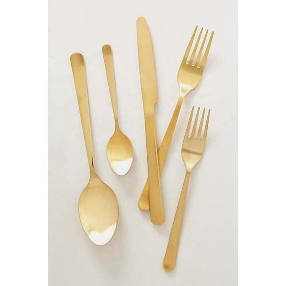ชุดช้อนส้อมสแตนเลสมีดที่จับเรซินสีดำแบนสีโรสโกลด์ออกแบบโลโก้ได้ตามต้องการ