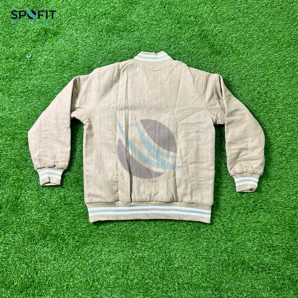 แจ็คเก็ตเบสบอลแบบมีโลโก้ปักเองสำหรับผู้ชาย แจ็คเก็ตบอมเบอร์ แจ็คเก็ตเลตเตอร์แมน แจ็คเก็ตวิทยาลัย ไซส์ใหญ่ สำหรับชุดกีฬา ขายส่ง