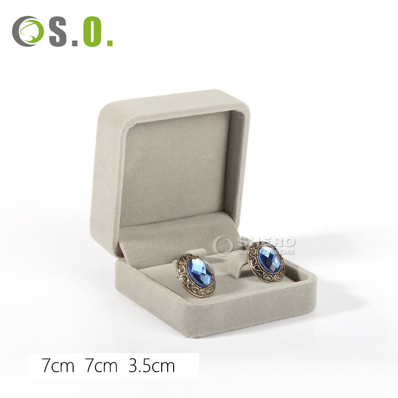กล่องใส่เครื่องประดับอัญมณีสีเทากำมะหยี่พร้อมโลโก้หรูหราสำหรับเป็นของขวัญ