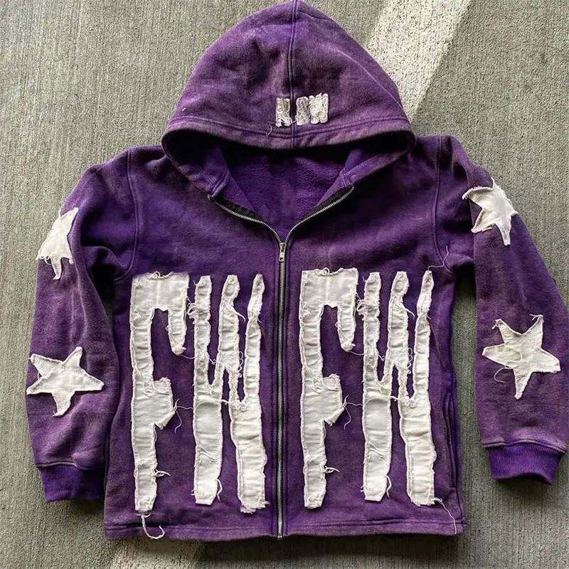 เสื้อฮู้ดแบบมีซิปสำหรับผู้ชายเสื้อมีฮู้ดสำหรับซักแบบมีซิปเย็บปักแบบยูนิเซ็กส์โลโก้ออกแบบได้ตามต้องการ