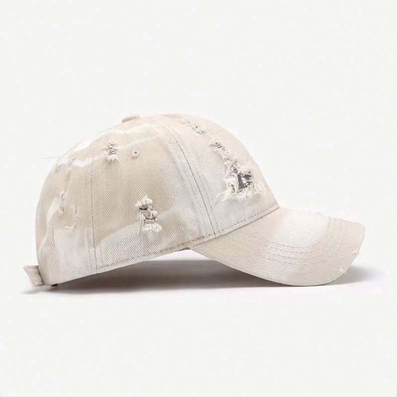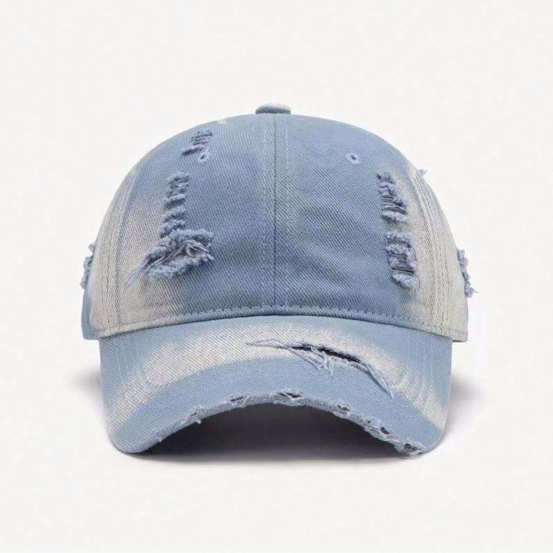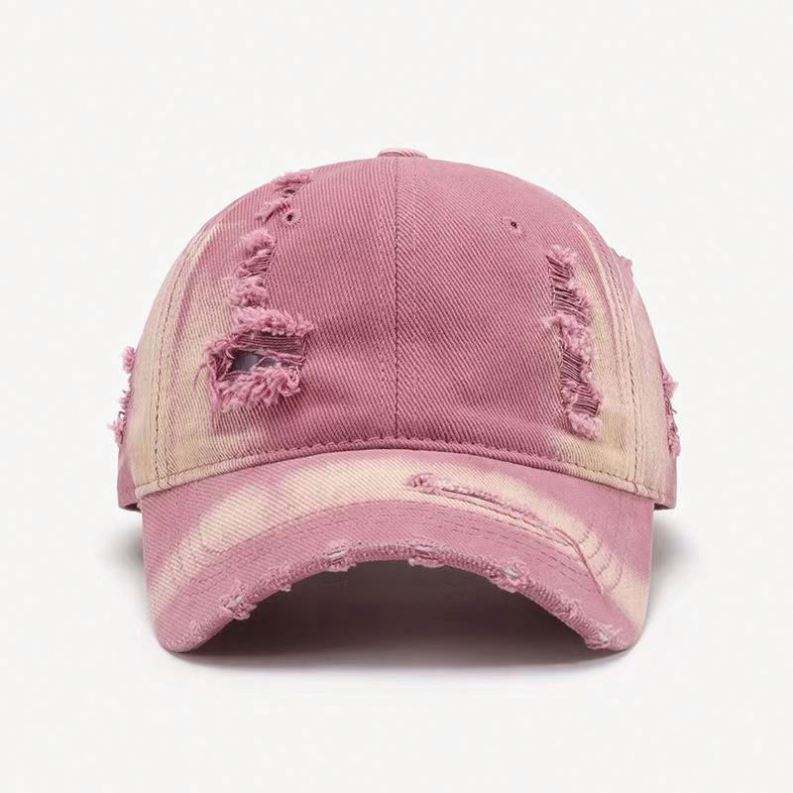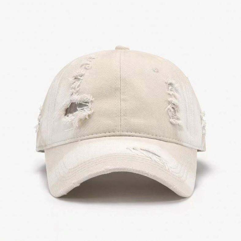 หมวกเบสบอลแบบวินเทจขอบดิบ แต่งลายขาดๆ สั่งทำโลโก้ได้ ขายส่ง สำหรับผู้หญิง