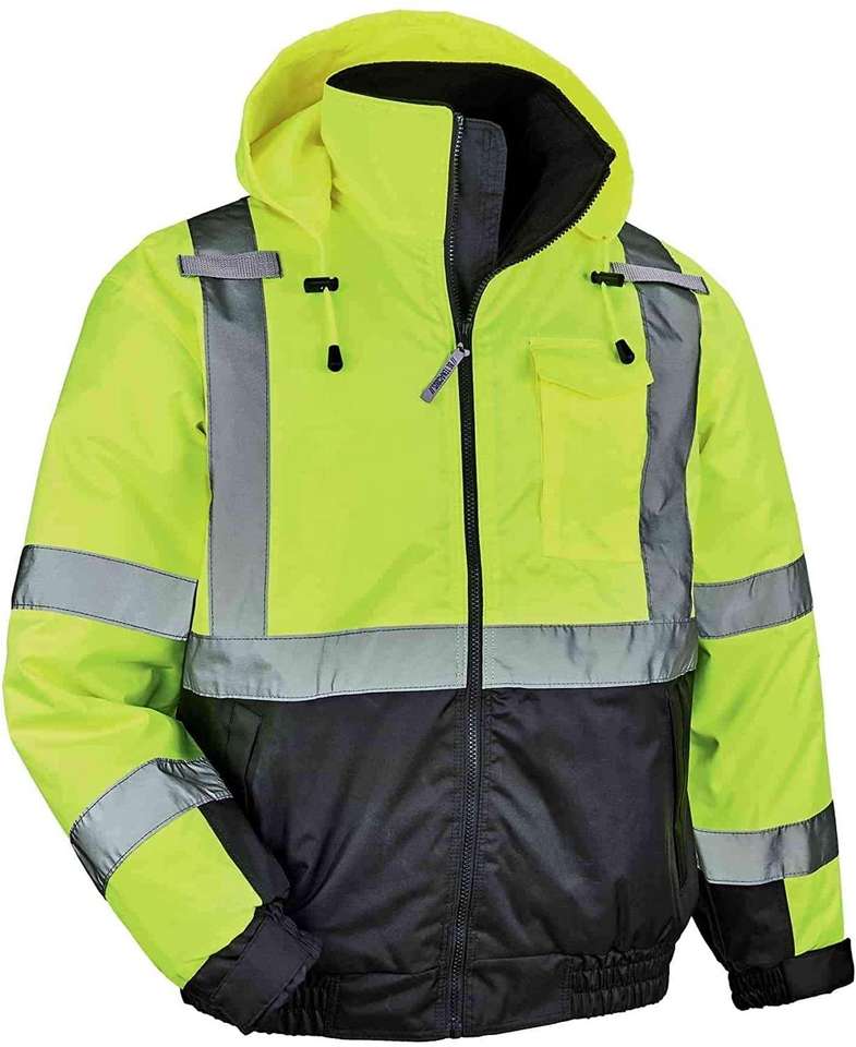 แจ็กเก็ตก่อสร้างสำหรับฤดูหนาวเสื้อแจ็กเก็ตแขนยาวสะท้อนแสงทำงานปลอดภัยพร้อมวัสดุคอตตอนมาตรฐาน