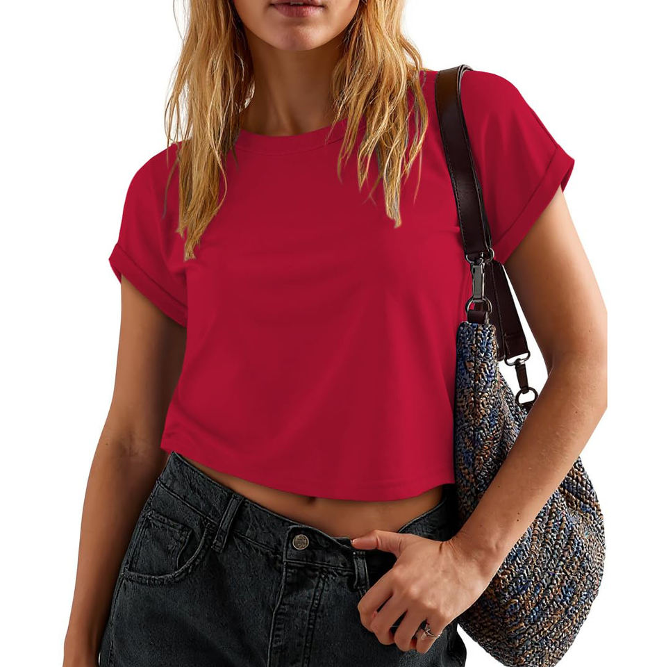 เสื้อยืดครอปท็อปผู้หญิงแบบขายส่ง สกรีนโลโก้ได้ตามต้องการ เสื้อยืดแขนสั้นทรงเข้ารูปสำหรับฤดูร้อน เสื้อยืดออกกำลังกาย เสื้อครอปท็อป