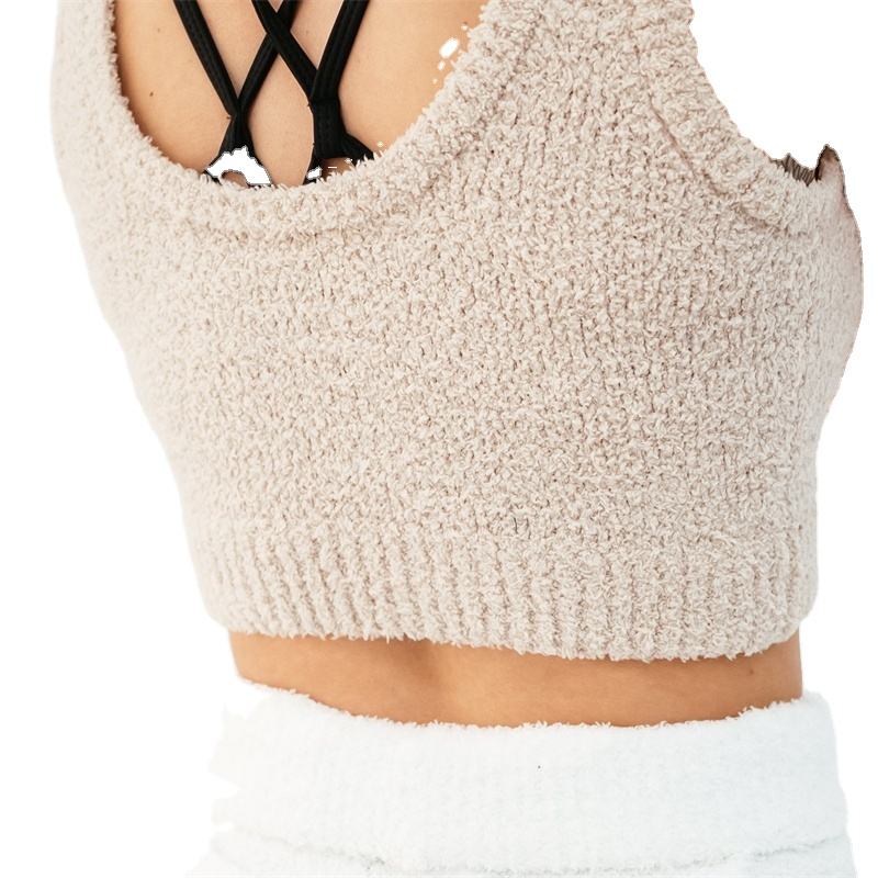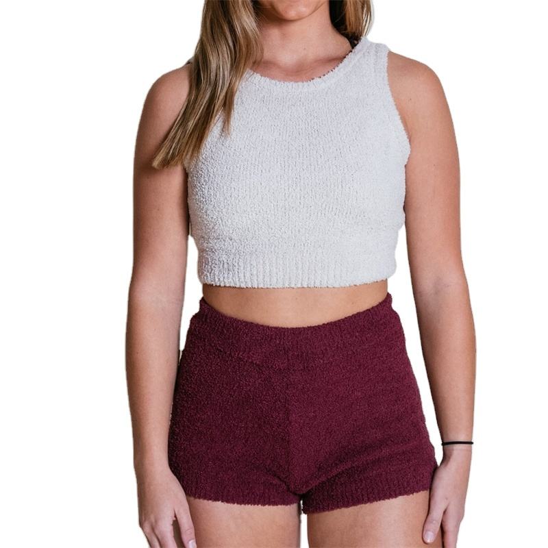 ชุดเซ็ตเสื้อครอปแขนกุดผ้าฟลีซนุ่มฟูถักนิตติ้งลายโลโก้สั่งทำขายส่งสำหรับผู้หญิง รุ่น BS 2026