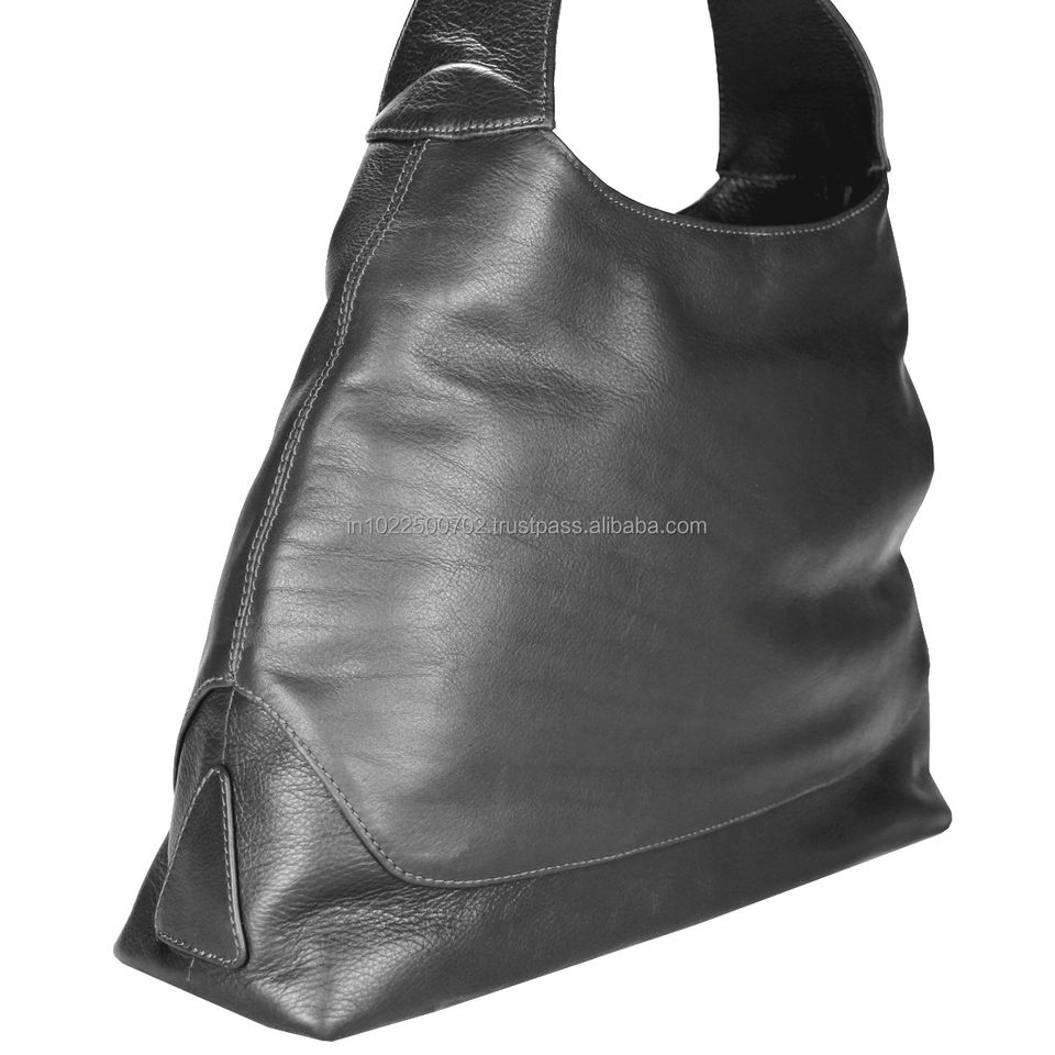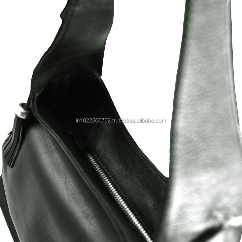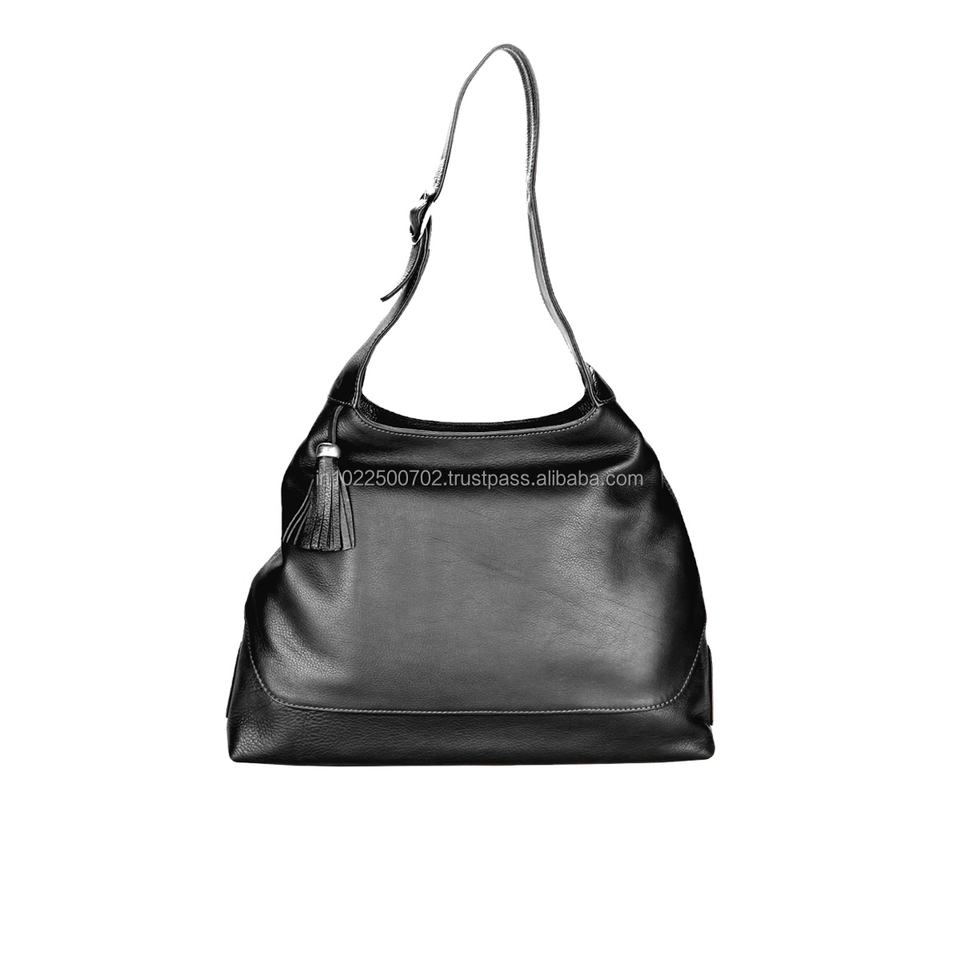 กระเป๋าถือหนังวัวแท้สำหรับผู้หญิงสีดำพร้อมโลโก้ออกแบบได้ตามต้องการ