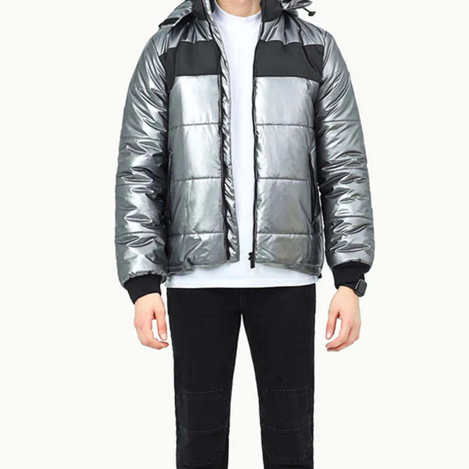 แจ็คเก็ตพัฟเฟอร์ฤดูหนาวผู้ชายทรงสลิมบาง ผ้าสแปนเด็กซ์/โพลีเอสเตอร์ พร้อมซิป ปักลายการ์ตูนด้วยไหมเชนิลล์ รับผลิตตามสั่งพร้อมโลโก้