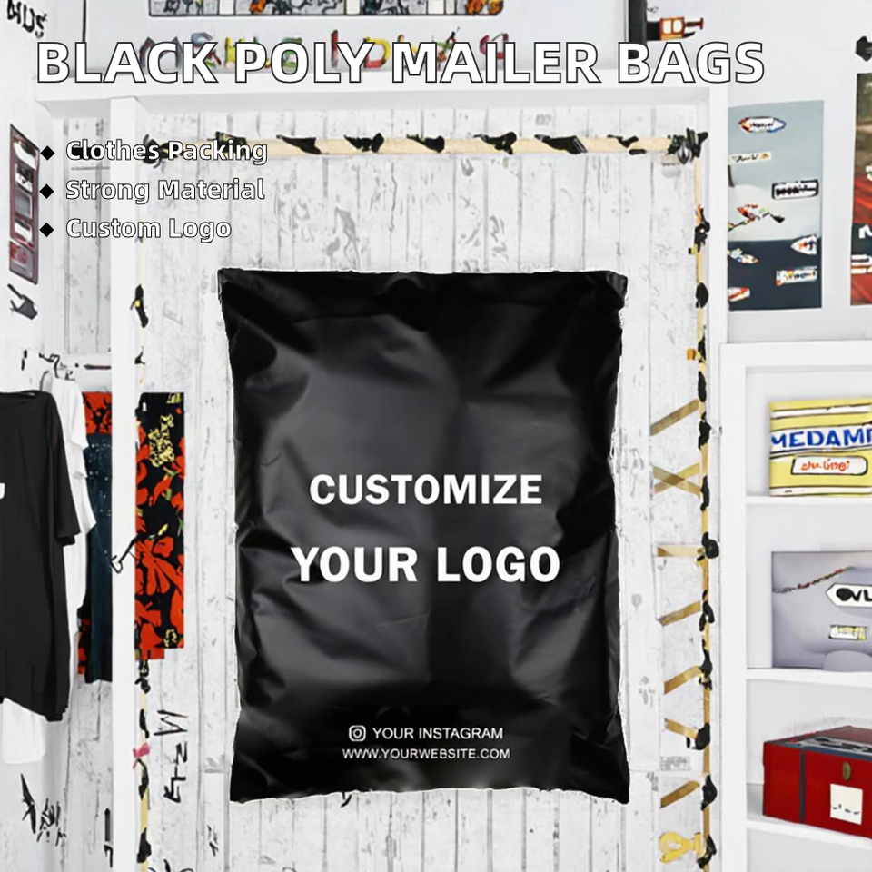 ถุงพลาสติกโพลีเมลเลอร์สีดำสำหรับบรรจุภัณฑ์เสื้อผ้า ผลิตในจีน รับผลิตตามสั่งพร้อมโลโก้