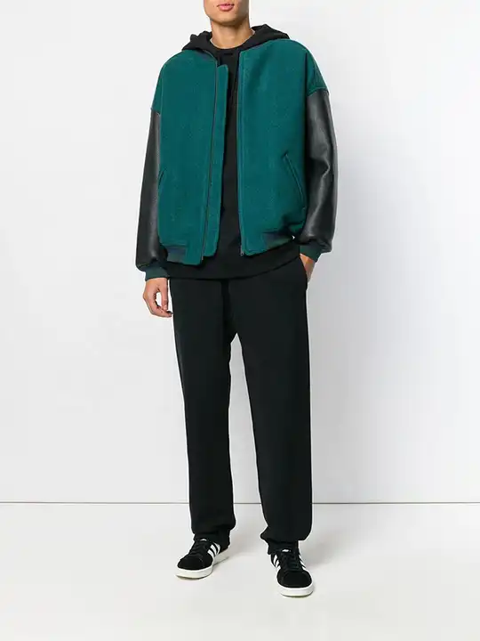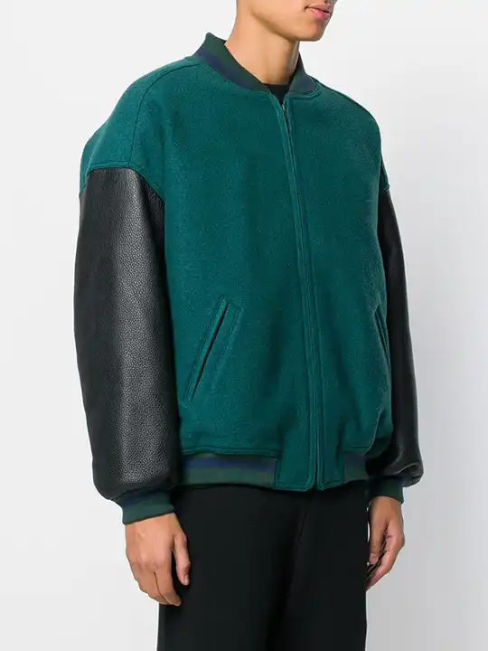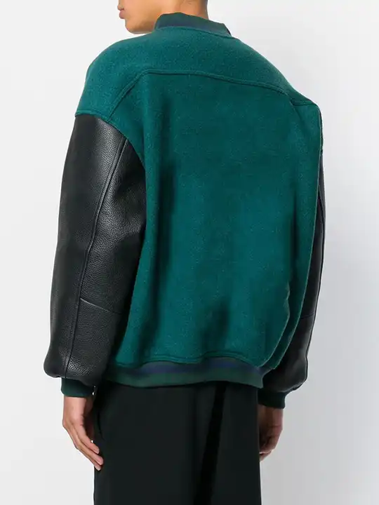 เสื้อแจ็กเก็ตทีมเบสบอลแขนยาวสำหรับผู้ชายแขนหนังมีกระดุมถักเป็นมิตรกับสิ่งแวดล้อม