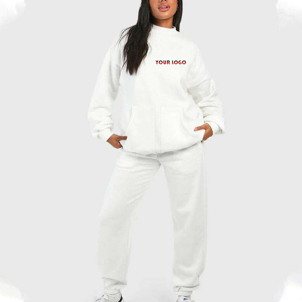 ชุดวอร์ม2ชิ้นสำหรับผู้หญิงชุดวอร์มสไตล์ฮิปฮอปผ้าฟลีซทำจากผ้าฝ้าย100% ออกแบบได้ตามต้องการ