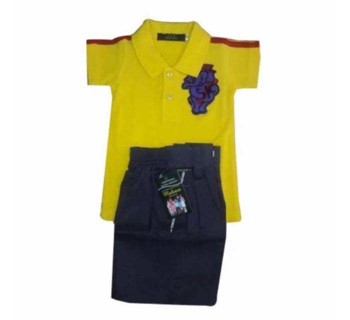 ชุดเสื้อ/กางเกงขาสั้นผ้าคอตตอนพิมพ์ลายครึ่งแขนทำจากผ้าฝ้ายชุดเครื่องแบบนักเรียนสำหรับเด็กสีต่างๆ