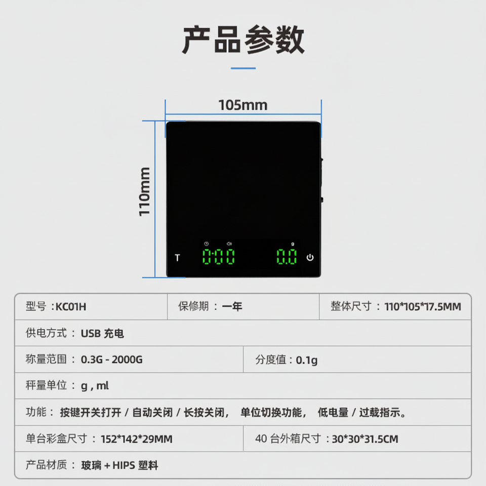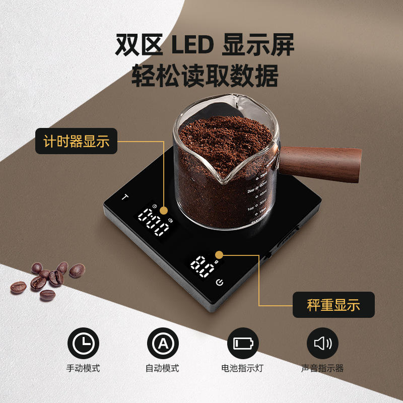 เครื่องชั่งกาแฟพกพาขนาดเล็กแบบกำหนดเองขายส่ง ความแม่นยำสูง 0.1 กรัม เครื่องชั่งดิจิตอลสำหรับร้านชานม ข้ามพรมแดน